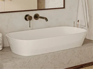 Trapezowa umywalka z lanego marmuru TRIPOLI to idealny model do dużej i przestronnej łazienki. Płytka misa nie wpływa negatywnie na komfort podczas jej użytk...