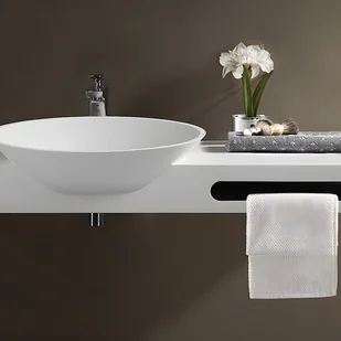 Szukasz oryginalnego blatu umywalkowego o zaskakujących krzywiznach? Cechą szczególną modelu YUMIKO jest kontrast pomiędzy prostokątnymi liniami blatu i zaokrąglonymi krzywiznami umywalki. Detale są dopchnięte do wykończenia wieszaka na ręczniki, który doskonale integruje się z całością. Produkt wykonany jest z solid surface, wysokiej jakości materiału, który jest zarówno funkcjonalny jak i estetyczny.