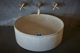 Umywalka betonowa model V_0 kolor jasnoszary. Na życzenie indywidualne potrafimy wykonać elementy w kolorystyce skali RAL. Odpowiednie kolory pokazują zamieszczone zdjęcia. Klasyczny okrągły kształt, montowany na blat, o średnicy niecki 41 cm i głębokość misy 13 cm. To idealne proporcje które ozdobią wymagające wnętrza.