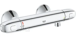 naścienna GROHE CoolTouch nienagrzewający się korpus GROHE Long-Life wykończenie GROHE MetalGrip ergonomiczne uchwyty GROHE SafeStop blokada na 38°C GROHE SafeStop Plus w zestawie opcjonalny ogranicznik temperatury 43°C GROHE TurboStat głowica termostatyczna zintegrowane odcięcie wody mieszanej GROHE EcoButton przycisk na pokrętle redukujący przepływ wody głowica ceramiczna 1/2", 180° wyjście prysznica na dole 1/2" wbudowane zawory zwrotne sitka do zanieczyszczeń zabezpieczenie przed przepływem zwrotnym przyłącza S metalowa rozeta GROHE Water Saving mniejsze zużycie wody Wariant produktu: Professional zastępuje baterię termostatyczną 34 143 003