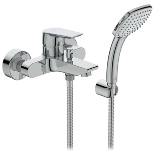 Bateria wannowa ścienna z główką prysznicową, wężem i uchwytem prysznicowym