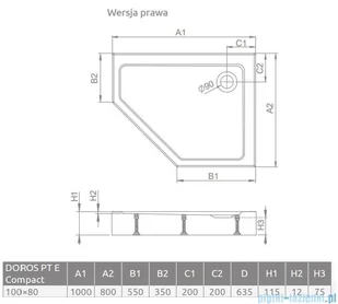 Radaway Doros Pt E Compact Stone brodzik pięciokątny 100x80x11,5cm prawy biały SDRPTP1080-05-04SR | Darmowa dostawa