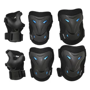 3-CZĘŚCIOWY ZESTAW OCHRANIACZY SPORTVIDA- ROZM. S Bezpieczeństwo przede wszystkim! Komplet ochraniaczy został zaprojektowany w taki sposób, aby skutecznie ochraniać nadgarstki, łokcie i kolana podczas upadków. Ochraniacze wyposażono w elastyczne paski z rzepami, służące do ich optymalnego dopasowania do ciała, co zwiększa przyjemność i bezpieczeństwo jazdy. Świetny system pianki EVA pochłania mocne uderzenia, dzięki czemu zestaw ochraniaczy dobrze chroni nawet podczas mocnych upadków. Ochraniacze mają kształt podkowy, co minimalizuje ryzyko przesuwania, a tym samym zwiększa ochronę.
