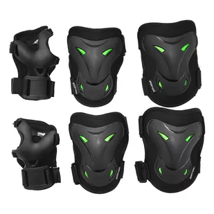 Komplet ochraniaczy został wykonany z wysokiej jakości materiału, co gwarantuje trwałość i ochronę. Anatomiczny kształt dobrze dopasowuje się do sylwetki, co zapewnia niezwykle wysoki poziom wygody i komfortu. Opis: pianka EVA doskonale pochłania wstrząsy 2 ochraniacze na kolana 2 ochraniacze na łokcie 2 ochraniacze na nadgarstki szyna nadgarstka wykonana z materiału PE skorupa łokci i nakolanników wykonana z materiału PE idealne na rolki, deskorolkę, hulajnogę wygodne anatomiczny kształt zapięcie na rzep