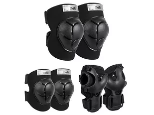 Zestaw ochraniaczy na nadgarstki, łokcie i kolana. Wykonany z wysokiej jakości materiałów. Skorupa zaprojektowana z mocnego i lekkiego tworzywa dobrze wyprofilowana. Wszystkie ochraniacze wyposażone są w zapięcie na rzepy, dzięki czemu utrzymują ochraniacze we właściwym miejscu. Zaprojektowane tak, aby użytkownik czuł się komfortowo i w maksymalnym stopniu zabezpieczał nadgarstki, łokcie i kolana przed urazami.