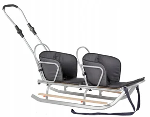 Polskie SANKI DUO SREBRNE MATERACYK GRAFITOWY dla dzieci Bliźniaki MOCNE