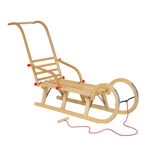 Drewniane sanki z oparciem i pchaczem