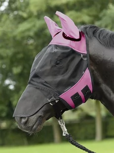 Maska siatkowa z nausznikami oraz klapką na chrapy. Obszerna siatka nie przeszkadza w swobodnym ruchu powiek. Nauszniki miękkie i elastyczne. Zapinana na dwa szerokie rzepy. Dobrze dopasowana do głowy.