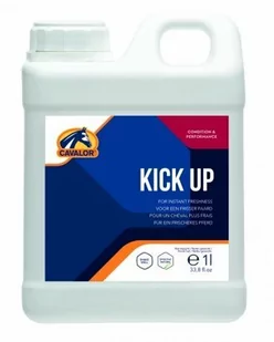 Witaminy i minerały KICK UP 1L - CAVALORZawiera łatwo i szybko wchłaniane witaminy, minerały, aminokwasy, kwasy omega 3 i 6, kwasy tłuszczowe i aromatyczne ekstrakty roślinne. Dzięki obecności tych wysokiej jakości składników odżywczych i ich wzajemnego oddziaływania, procesy fizjologiczne dostają dodatkowy impuls. Wyniki zastosowania preparatu są szybko zauważalne: poprawiony w sposób widoczny nastrój konia, koń jest wyraźnie ożywiony i wydajność zwiększa się bardzo szybko. Składniki produktu:
