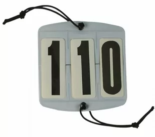 Numerek startowy, który można umocować na gumki, rzep lub agrafkę.Trzy cyfry w opakowaniu z PCV.Kolor: biały/czarne cyfry...