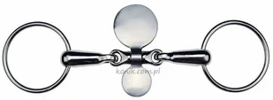 Wędzidło podwójne łamane z łyżką.Zalecane dla koni przekładających język.Wykonane ze stali nierdzewnej.Grubość ścięgierza: 18mm...