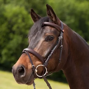 Ogłowie wykonane z bardzo dobrej jakości skóry. Posiada miękko podszytą część potyliczną oraz nachrapnikową. Klasyczne i eleganckie, nie posiada żadnych ozdobników. W komplecie gumowe wodze. Kolory: czarnybrązowyRozmiary: