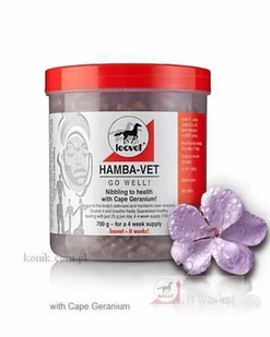propionian wapnia E282. Składniki analityczne: substancja sucha (82,90%),białko surowe (13,70 %),popiół surowy (8,7%),włókno surowe (8,4%),tłuszcze i oleje (4,25%),wapno (1,61%),sód (0,46%)fosfor (0,42%)Preparat na drogi oddechowe Leovet Hamba Vet nie jest środkiem dopingującym. Stosowanie i dawkowanie: Długość całej kuracji wynosi 4 tygodnie i w zupełności wystarczy do niej jedno opakowanie.