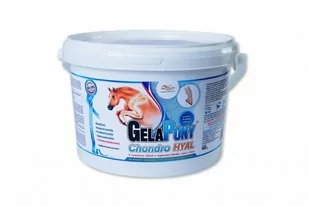 Suplement na stawy i ścięgna GelaPony Chondro HYAL 900g - OrlingKompletny doustny chondro nutraceutyk z bioaktywnym kolagenem CHP, kwasem hialuronowym i MSM do intensywnej regeneracji układu chrzęstno-stawowego, do polepszenia mechanicznych i elastycznych właściwości tkanek stawowych i dla ich odżywienia przy dużym obciążeniu fizycznym. Dzięki wysoce efektywnej kombinacji substancji odżywczych preparat poprawia elastyczność chrząstki stawowej, więzadeł i ścięgien, wzmaga mobilność i eliminuje ból w stawach. Wskazania: dodatek w leczeniu osteoporozydodatek w leczeniu zapalenia kości i stawów i w innych dolegliwościach ze strony układu szkieletowego i stawowego koniintensywna regeneracja i odbudowa systemu tkanek stawowychwzmaga nawodnienie chrząstek stawowychwzmaga mobilność i ogranicza ból w stawachprzy ekstremalnym sportowym wysiłkuw przypadku nabrzmiałych i opuchniętych stawóww przypadku zapalenia kaletki Bioaktywne Peptydy kolagenowe CHP (Collagen Hydrolysate Peptides) odżywiają i regenerują chrząstki stawowe, więzadła i ścięgna, wzmacniają kości, łagodzą i usuwają następstwa wcześniejszego niedostatecznego odżywienia i uszkodzenia stawów, odbudowują uszkodzone tkanki łączne, zapobiegają dalszemu uszkadzaniu chrząstek, poprawiają ruchomość i zmniejszają ból. Kolagen jest podstawowym składnikiem chrząstek stawowych, uwarunkowuje ich mechaniczne właściwości przede wszystkim ich trwałość i elastyczność. Peptydy kolagenowe zwiększają syntezę stawowego kolagenu o 100%.