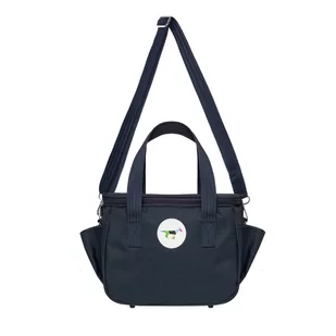 Torba ma ciekawy krój, przez co może być wykorzystywana nie tylko na szczotki, ale także na co dzień, jako zwykła torba miejska. Wymiary: Wysokość: ok. 23 cm. Szerokość podstawy: ok 17 cm. Długość podstawy ok. 29 cm. Kolor torby: granatowa Uszyta z wytrzymałej tkaniny – Codura (100% poliester), usztywniana pianką.