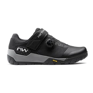 Podeszwa Vibram Fort Augustus - na mokre i suche warunki Podeszwa środkowa z pianki EVA Warstwy zgrzewanej termicznie Wkładka z TPU - wzmocnienie konstrukcji System podwójnego zapinania, który łączy rzepy z dialem SLW3 Wzmocniona cholewka i język butów Język wykonany z cienkiej warstwy wyściółki dla maksymalnego komfortu Stabilna pięta Northwave Overland Plus to mocne buty z systemem SPD na trasy MTB i Enduro. Lekka konstrukcja ze wzmocnieniami i solidną płaską podeszwą zapewni oparcie i osłoni stopę na szybkich terenowych przejazdach. Podeszwa Vibram z możliwością mocowania systemu SPD i pociętym bieżnikiem zapewnia przyczepność i stabilność zarówno na suchym jak i mokrym podłożu, szutrach, skałach i leśnych ścieżkach. Nadlany nosek to dodatkowa osłona przed kamieniami i korzeniami. Podeszwa środkowa z pianki EVA amortyzuje i zapewni lekkość konstrukcji.