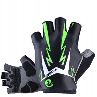 RĘKAWICZKI ROWEROWE KRÓTKIE GEL DOBRA AMORTYZACJA ✔️ Marka: X-TIGER ™️ ✔️ Kolor: czarny z zielono-białymi wstawkami. ✔️ Materiał - 87% poliester, 13% elastan...
