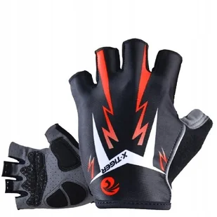 RĘKAWICZKI ROWEROWE KRÓTKIE ŻELOWE DOBRA JAKOŚĆ ✔️ Marka: X-TIGER ™️ ✔️ Kolor: czarny z czerwono-białymi wstawkami. ✔️ Materiał - 87% poliester, 13% elastan....