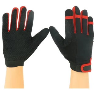 czarno - czerwone, Chronią ręce podczas upadku, stanowią ocieplenie Ściągacz w nadgarstku zapobiega zsuwaniu się rękawiczek, Materiał: