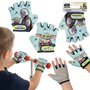 STAR WARS The Mandalorian Dziecięce rękawiczki rowerowe na rower, hulajnogę dla chłopca, na rzep Rękawiczki rowerowe dla dzieci z motywem Star Wars: The Mandalorian to praktyczny i efektowny dodatek, który zwiększa komfort oraz bezpieczeństwo jazdy na rowerze. Kolorowa grafika przedstawiająca Mandalorian oraz uroczego Grogu sprawia, że rękawiczki szybko stają się ulubionym elementem wyposażenia małego fana serii. Dzięki zapięciu na rzepy rękawiczki można łatwo dopasować do dłoni dziecka, co zapewnia stabilność i wygodę podczas jazdy. Spód rękawiczek obszyty jest specjalnym materiałem amortyzującym, który poprawia chwyt kierownicy i chroni dłonie przed otarciami.