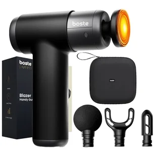 Inteligentny system nacisku – urządzenie automatycznie dostosowuje moc do siły przyłożenia, zapewniając bezpieczny i skuteczny masaż. Praktyczne etui w zestawie – łatwe przechowywanie i możliwość zabrania urządzenia wszędzie ze sobą. HotTherapy+ – podwójna ulga dla mięśni Boste Blazer Handy Gun Massager łączy w sobie intensywny masaż tkanek głębokich z terapią cieplną 40–45°C. To wyjątkowe połączenie sprawia, że urządzenie nie tylko rozluźnia napięte mięśnie, ale też dodatkowo poprawia krążenie krwi i przyspiesza proces regeneracji. Delikatne ciepło działa jak kompres – koi i przygotowuje mięśnie do głębszego masażu, a jednocześnie potęguje efekt rozluźnienia.
