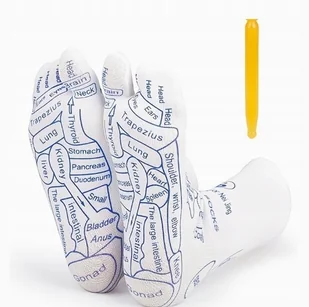 dokładna mapa refleksologiczna stóp kolor: biały z kolorowym nadrukiem unisex – idealne dla kobiet i mężczyzn łatwe w czyszczeniu i wielokrotnego użytku Mapa Zdrowia na Stopach Na podeszwie każdej skarpetki znajduje się precyzyjna mapa stref refleksyjnych, odpowiadających konkretnym organom i częściom ciała. Dzięki niej możesz łatwo lokalizować punkty ucisku i poprawiać pracę całego organizmu, stymulując je samodzielnie! ? Relaks Bez Wysiłku Załóż skarpetki i. . . po prostu chodź po domu! ♂️? Dzięki stymulacji refleksologicznej poczujesz odprężenie, zmniejszenie napięcia i poprawę krążenia. Doskonałe po długim dniu pracy, podczas medytacji, jogi czy nawet podczas oglądania seriali! ?? Domowe SPA Dla Twoich Stóp To jak masażysta zawsze pod ręką – bez kosztów i bez umawiania się.