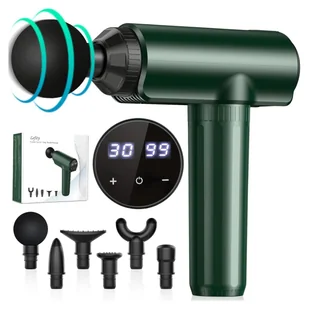 Pistolet do masażu mięśni J-Style zielony 2600 mAh 30 prędkości 6 głowic