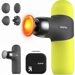 RENPHO Mini pistolet do masażu termicznego z funkcją ogrzewania, przenośny, modny masażer perkusyjny, z kolorowymi silikonowymi osłonami, rozmiar podróżny z ...