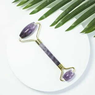 Roller do masowania twarzy pełen spokoju, przeciwzmarszczkowy Ametyst KORZYŚCI Poczuj niesamowitą moc kamieni! Pozwól sobie na odrobinę relaksu, który sprawi, że Twoja skóra stanie się elastyczna i nabierze blasku! OPIS PRODUKTU Ametyst pomaga się skoncentrować. Sprawia również, że umysł jest bardziej otwarty. Ten kamień pomaga również wyciszyć się, dlatego masaż nim jest jeszcze bardziej odprężający i relaksacyjny. Dodatkowo kamień ma działanie przeciwzmarszczkowe i pomaga w poprawie elastyczności skóry. Większa rolka idealnie nadaje się do masażu czoła, policzków i szyi.