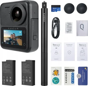 KanDao QooCam 3 Kamera sportowa, Zestaw podróżny, 5.7K 62MP Zdjęcie 60fps Bezbłędna kamera wideo 360, Podwójne czujniki 1/1,55" lepsze do zdjęć nocnych, Wodoodporność, stabilizacja.
