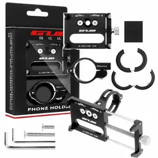 uchwyt GUB G-85, aluminiowe śruby mocujące, obejma na kierownicę, zestaw 2 szt. nakładek umożliwiające dokładne dopasowanie na kierownicy, piankowe gumki na rogi uchwytu, zapewniające redukcję wstrząsów, i pewność niezarysowania telefonu, zestaw kluczy imbusowych do montażu. Uchwyt można bez problemu zamontować na kierownicy roweru,hulajnogi czy skutera, nie tracąc stabilności urządzenia podczas jazdy. Za wszystko odpowiadają aluminiowe śruby, na których uchwyt jest mocowany. Telefon można ustawić zarówno w pozycji pionowej i jak poziomej.