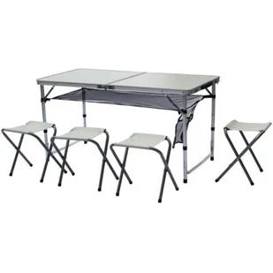 Turystyczny stół, to podstawa każdego udanego kempingu, wakacji, wyjazdu na ryby i na działkę. Dzięki składanym nóżkom, stół zajmuje minimalną ilość miejsca i jest gotowy zawsze, kiedy go potrzebujesz. Wyróżnia go szybkie i łatwe rozkładanie. Stolik turystyczny z 4 krzesłami, regulacją wysokości i półką z siatki pod spodem. Godny polecania zestaw turystyczny dla całej rodzinki.