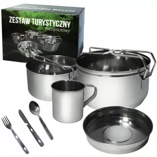 7 elementów ☑️ Z materiałów najwyższej jakości gwarntujących doskonałą trwałość naczyń i odporność na rdzę ☑️ Oszczędza miejsce - można wkładać jeden w drugi Jest to produkt idealnie nadający się tam, gdzie nie mamy dostępu do zwykłych naczyń i sztućców. Jest więc to idealny zakup na obozy harcerskie, obozy sportowe, wycieczki, wyprawy górskie, oraz do każdego innego miejsca, gdzie wypoczynek odbywa się na otwartym powietrzu.
