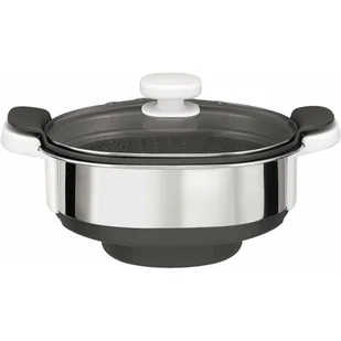 Parowar posiada dodatkowe poziomy gotowania umożliwiające przygotowanie zdrowych i smacznych potraw, które zachwycą całą rodzinę! Umieszczana na pokrywce miski po wcześniejszym zdjęciu uchwytu, dzięki czemu para swobodnie krąży w całym parowarze. W skład parowaru wchodzą: miska parowa inox o poj. 3. 7 L, tacka parowa, zbiornik na wywar, przezroczysta szklana pokrywa umożliwiająca kontrolę gotowania. Możliwość gotowania aż 4 potraw jednocześnie! Stworzona do robota: