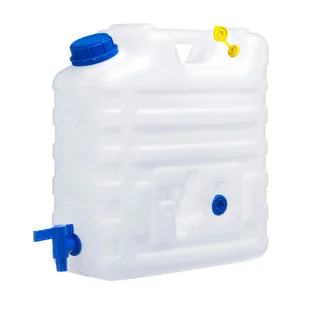 KAMAI Kanister na wodę z kranikiem i odpowietrznikiem PROFI EX o pojemności 17l wykonany jest z twardego niepękającego tworzywa HDPE, zapewniającego wysoką wytrzymałość i odporność na uderzenia. Dzięki pojemności 17 litrów, jest idealny zarówno do codziennego użytku w domu, jak i na wyjazdy, obozy czy podróże campingowe. Zastosowany kran umożliwia łatwe napełnianie kubków, butelek czy innych naczyń, a dodatkowy odpowietrznik zapewnia łatwiejszy i bardziej komfortowy przepływ płynów. Dane techniczne: Pojemność: 15 L (maks. 17L) Kolor pojemnika: