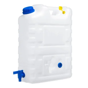 KAMAI Kanister na wodę z kranikiem i odpowietrznikiem PROFI EX o pojemności 22l wykonany jest z twardego niepękającego tworzywa HDPE, zapewniającego wysoką wytrzymałość i odporność na uderzenia. Dzięki pojemności 22 litrów, jest idealny zarówno do codziennego użytku w domu, jak i na wyjazdy, obozy czy podróże campingowe. Zastosowany kran umożliwia łatwe napełnianie kubków, butelek czy innych naczyń, a dodatkowy odpowietrznik zapewnia łatwiejszy i bardziej komfortowy przepływ płynów. Dane techniczne: Pojemność: 20 L (maks. 22L) Kolor pojemnika: