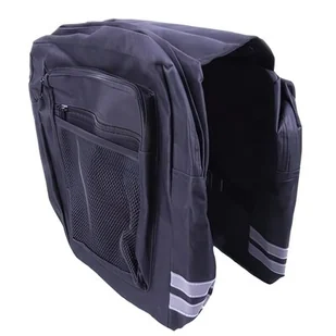 Podwójna torba rowerowa Forever Outdoor w kolorze czarnym montowana do bagażniku roweru. Posiada dwie pojemne kieszenie o pojemności 12 litrów każda. Po bokach torby znalazły się mniejsze kieszenie na podręczne przedmioty oraz dwie siatki. Sakwa rowerowa zapinana jest na trwały zamek błyskawiczny. Jest odporna na zachlapania. Na jej tylnej części znalazły się odblaskowe pasy poprawiające widoczność rowerzysty.