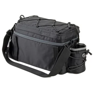 Torba na bagażnik tylny wykonana z materiału odpornego na działanie wody. Mocowana do bagażnika paskami z rzepem. Podwójne ścianki usztywnione gąbką techniczną. Komora główna zapinana na zamek. Dwie kieszenie wewnątrz i jedna kieszeń zewnętrzna.