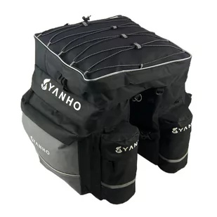 Po każdej stronie znajdują się dodatkowo dwie mniejsze kieszonki. W górnej komorze w kolejnej małej kieszonce schowany jest pokrowiec przeciwdeszczowy. Torba została obszyta paskiem odblaskowym dla zwiększenia bezpieczeństwa podczas podróży. Uniwersalna torba pasuje do większości typów bagażników, zapinana na regulowane zaczepy. Na górze torby również możemy schować jakieś przedmioty, znajduje się tam gumka, która pozwoli dobrze zabezpieczyć bagaż.