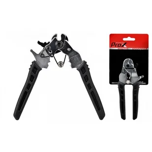Obcinaczki do linek i pancerzy • wykonane ze stali Cr-Mo • ergonomiczny uchwyt z tworzywa • blokowany, bolec do zaokrąglania otworu pancerza • z możliwością zaciskania końcówek pancerzy i linek • z funkcją skuwania i rozkuwania spinek łańcucha • waga: 160 g • pakowanie: zawieszka ProX (169 g)