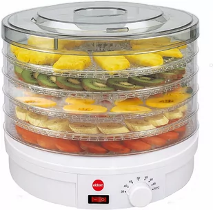 wys. ok 27cm, $101. ok. 32 cm- kolor biały - moc ok 245W Podobno już starożytni Rzymianie - a Słowianie na pewno! - doceniali i stosowali suszenie żywności. A suszenie to nic innego, jak odwadnianie, usuwanie całej wody z produktu, co chroni żywność przed rozwojem szkodliwych bakterii, pleśni i grzybów. Suszyć można owoce, warzywa, zioła i przyprawy, grzyby, nasiona i orzechy, mięso, makarony Suszenie zachowuje naturalny zapach, smak i wartości odżywcze produktów i ułatwia ich przechowywanie.