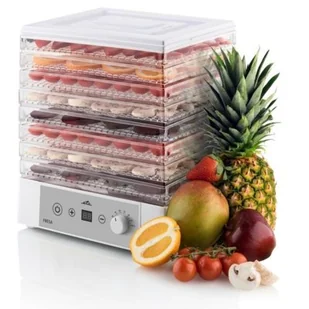 Suszarka do żywności Eta Fresa Suszenie jest najlepszym i całkowicie naturalnym sposobem zachowania cennych składników odżywczych zawartych w owocach i warzywach. Suszyć możemy z powodzeniem bardzo wiele rodzajów produktów - między innymi większość gatunków owoców, warzyw, a także zioła, nasiona, grzyby, mięso i ryby, nabiał np. jogurty czy ser. płynna regulacja temperatury 35°C - 70°C 8 poziomów suszenia ekran dostosowany do ziół przezroczyste półki suszarki z pokrywką ułatwiające kontrolę procesu suszenia materiał z siatki bez BPA możliwość zakupu dodatkowych półek suszących wymiary sita 30,5 x 24,5 cm aktywna powierzchnia suszenia 0,60 m2 bardzo szybki montaż, prosta obsługa i łatwa konserwacja cicha praca niskie zużycie energii Co możemy suszyć$78 Owoce morele, brzoskwinie, jabłka, banany, winogrona, gruszki, kiwi, jagody czereśnie, borówki, truskawki, wiórki kokosowe, daktyle, figi, śliwki, żurawika, rabarbar itp. Warzywa marchew, ogórki, buraki, pomidory, cebula, papryka, bakłażany, ziemniaki, sele, cukinia, rzepa, kukurydza, groch, fasole itp.