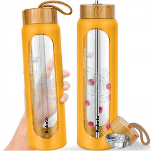 BUTELKA SZKLANA NA WODĘ NAPOJE ZE SŁOMKĄ SITKIEM SZCZELNA DUŻA BIDON 1,2L