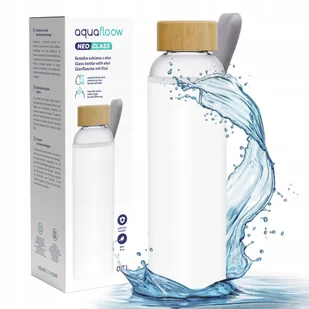 Szklana butelka bidon na wodę AquaFloow 0,7l z pokrowcem neoprenowym - biała