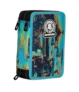 Invicta Piórnik szkolny z 3 suwakami, niebieski i czarny, potrójna przegródka, w komplecie z długopisami, ołówkami i markerami, akcesoria szkolne, akcesoria do plecaka, szkoły podstawowej, dziecko,
