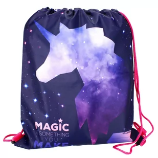 Fioletowy plecak/worek gimnastyczny z jednej strony z nadrukiem wizerunku Jednorożca i motywem gwiazdek. Worek posiada dwa ściągające, wytrzymałe sznurki łączone systemem zatrzaskowym łatwym do rozłączenia. Posiada wywietrzniki zapewniają cyrkulacje powietrza oraz miejsce na podpisanie worka imieniem i nazwiskiem właściciela. Doskonałe rozwiązanie dla dzieci i młodzieży chodzących do szkoły oraz różnego rodzaju zajęcia sportowe. Funkcjonalne uzupełnienie szkolnej wyprawki dla Twojego dziecka.