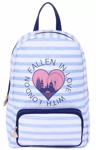 Plecak wykonany jest z miękkiej, miłej w dotyku skóry ekologicznej w niebiesko-białe paski. Posiada dwa regulowane paski, dzięki którym możesz dostosować plecak do swojego wzrostu i preferencji. W środku znajdują się dwie, otwarte kieszonki oraz jedna, większa kieszonka, która jest zapinana na zamek. Na zewnątrz dodatkowa kieszeń również zapinana na zamek. Plecak mieści format A4, więc idealnie nada się do pracy czy do szkoły.