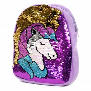 Przepiękny plecak dziecięcy z modnymi cekinami. Wystarczy przejechać po nich ręką, a zmienią swój kolor. Plecak zapinany na zamek, jednokomorowy. Wykonany z miękkiego pluszu, środek pokryty materiałem łatwym w utrzymaniu czystości. Wymiary plecaka ok.