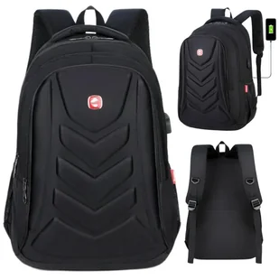 Plecak Męski Młodzieżowy Na Laptopa Do Samolotu Wodooporny Usb Czarny