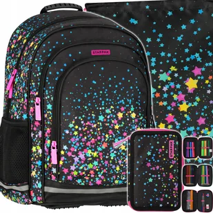 Plecak Szkolny Dla Dziewczynki Czarny W Gwiazdy Galaxy Piórnik Trzykomorowy